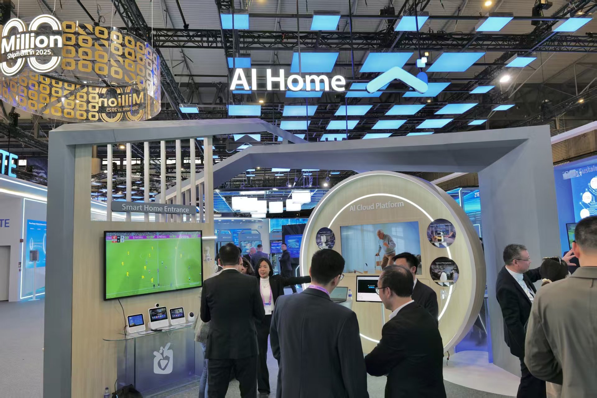 覆盖家庭场景的AI中屏系列产品,则承担了另一重角色。通过融合娱乐、通信、安防与全屋智控等能力,它成为家庭智能的中枢。2025年,中兴智慧中屏销量已超过百万台,FTTR产品累计发货超3000万套,Wi-Fi 7家庭终端稳居行业第一阵营。这些数字意味着,中兴拥有足够多的用户触点来承载AI生态的落地。