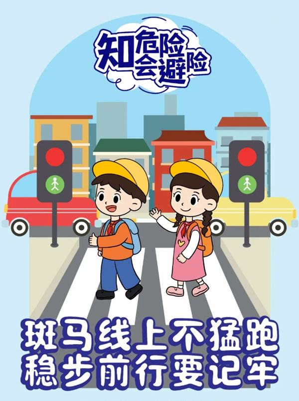 过马路要走斑马线,不要急行、奔跑或追逐嬉闹,自觉做到“一停二看三通过”。