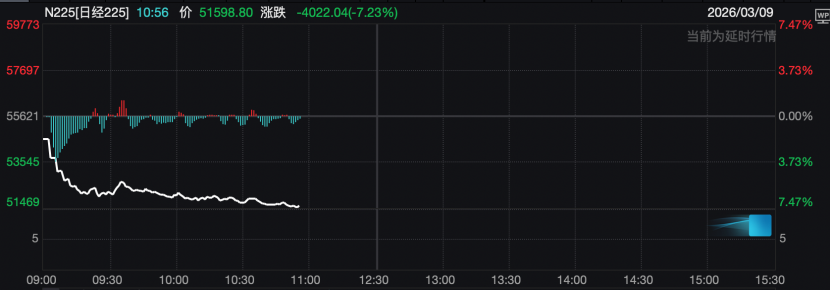 日本日经225指数盘中暴跌逾7%,创下本轮中东地缘冲突冲击以来的新低。