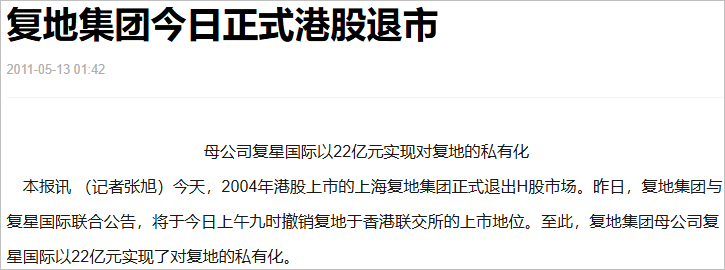 1993年,复星开始拿地开发,首个项目复星花园动工,标志着其从房产销售代理向开发转型。2001年,郭广昌收购豫园商城,正式进入商业地产与零售领域,多元化布局初现雏形。2004年,旗下地产平台复地集团在港股上市,成为第四家在港上市的内房股,且采用内地注册的H股架构。当时复地的销售规模跻身全国前十,项目在全国铺开。