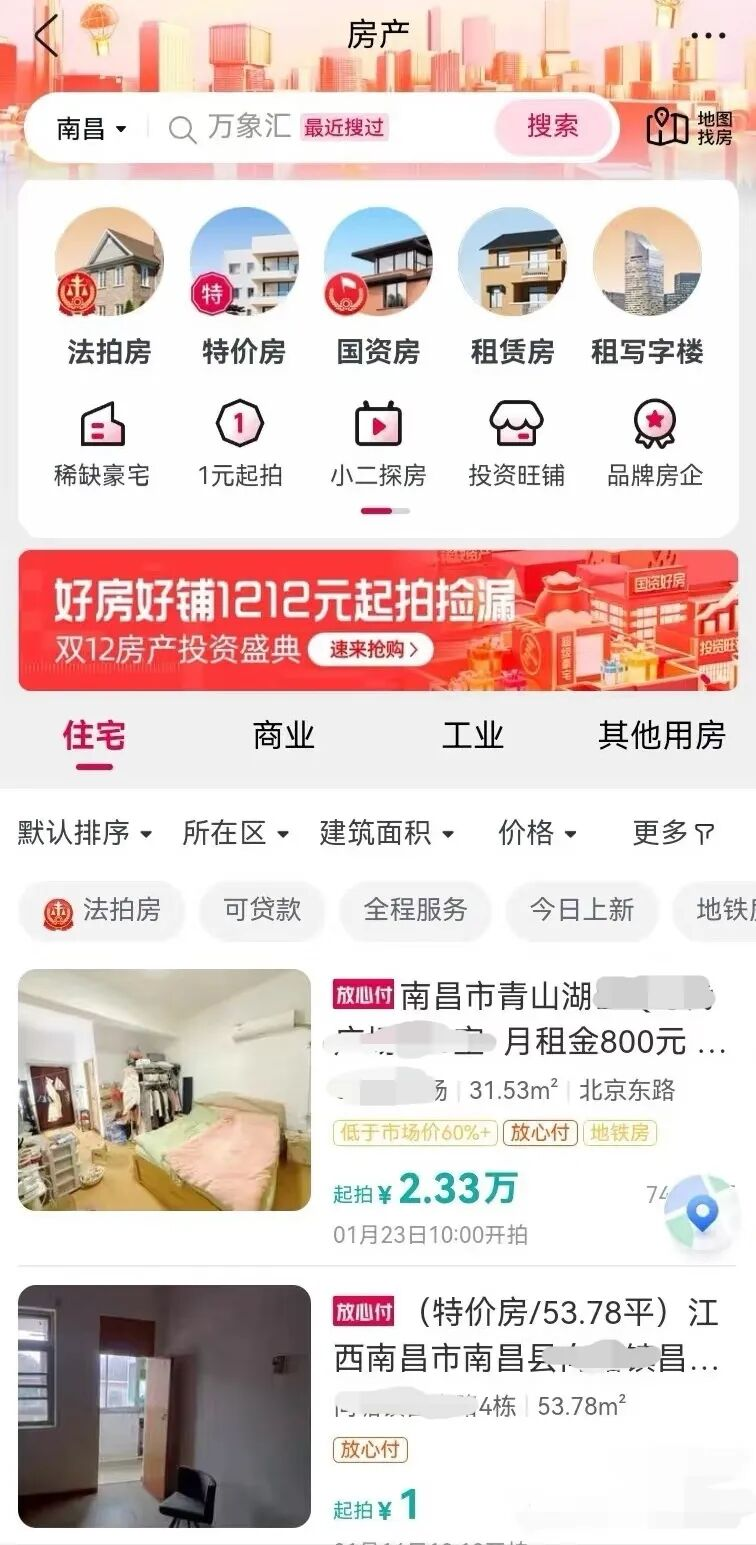 在被监管部门叫停以前,拍卖平台上存在大量的“1元特价房”