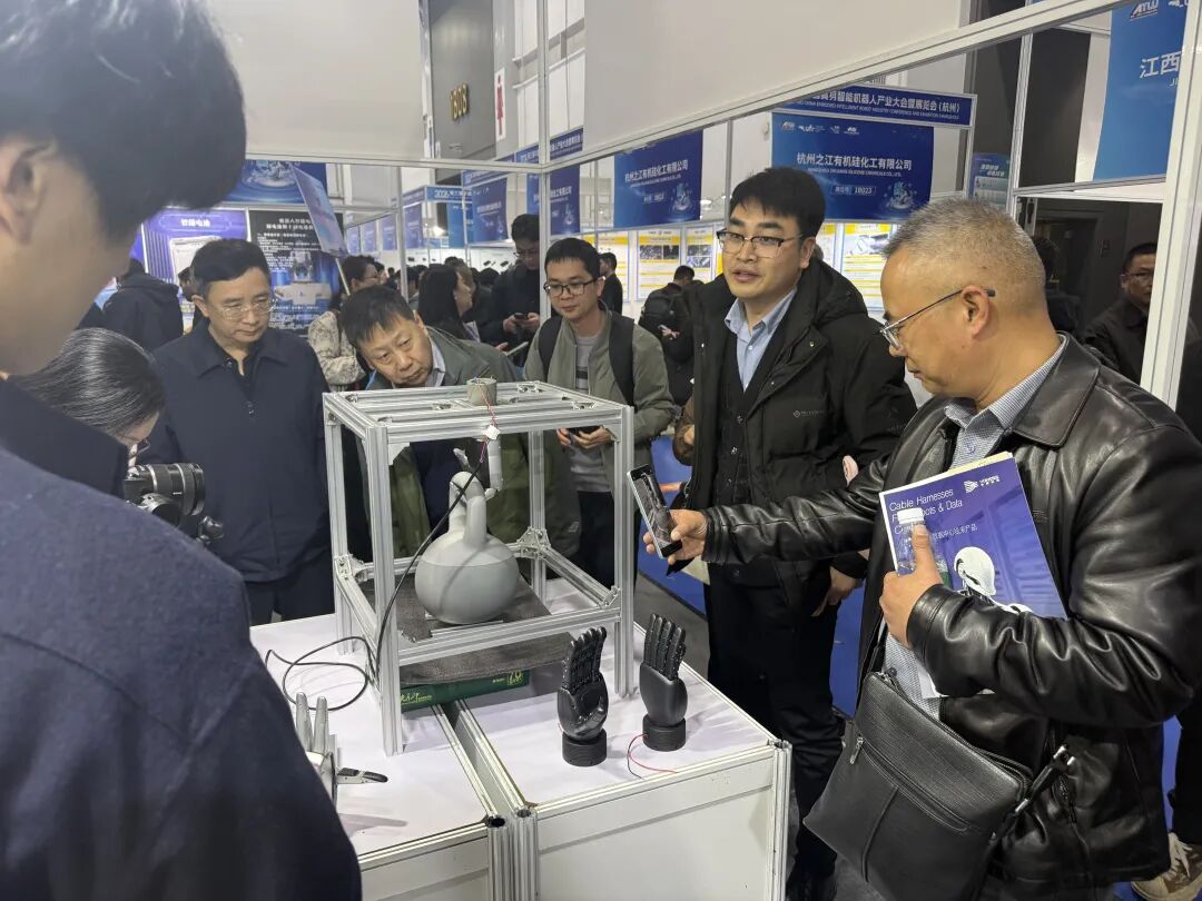 无锡凯伦纳弹簧总经理宓晓东与灵掌机器人总经理张超现场互加微信。凯伦纳原本主营车用弹簧,如今布局未来产业,研发用于机器人关节的高稳定性弹簧产品。双方一拍即合,合作机遇悄然萌发。