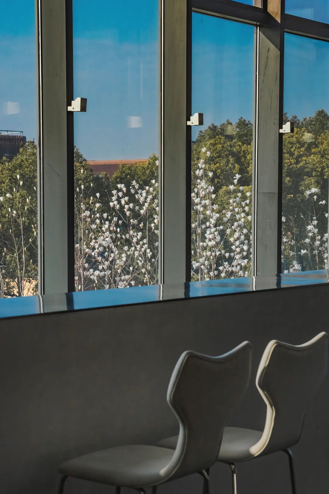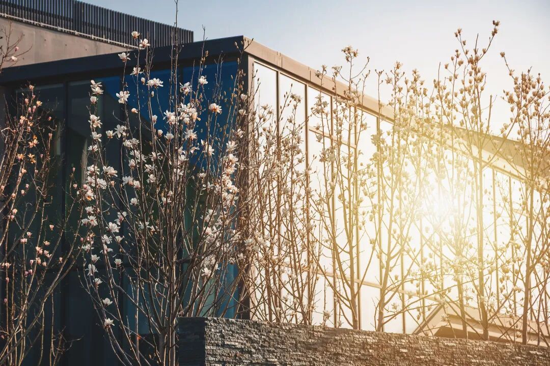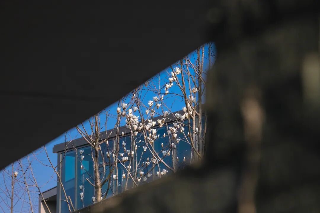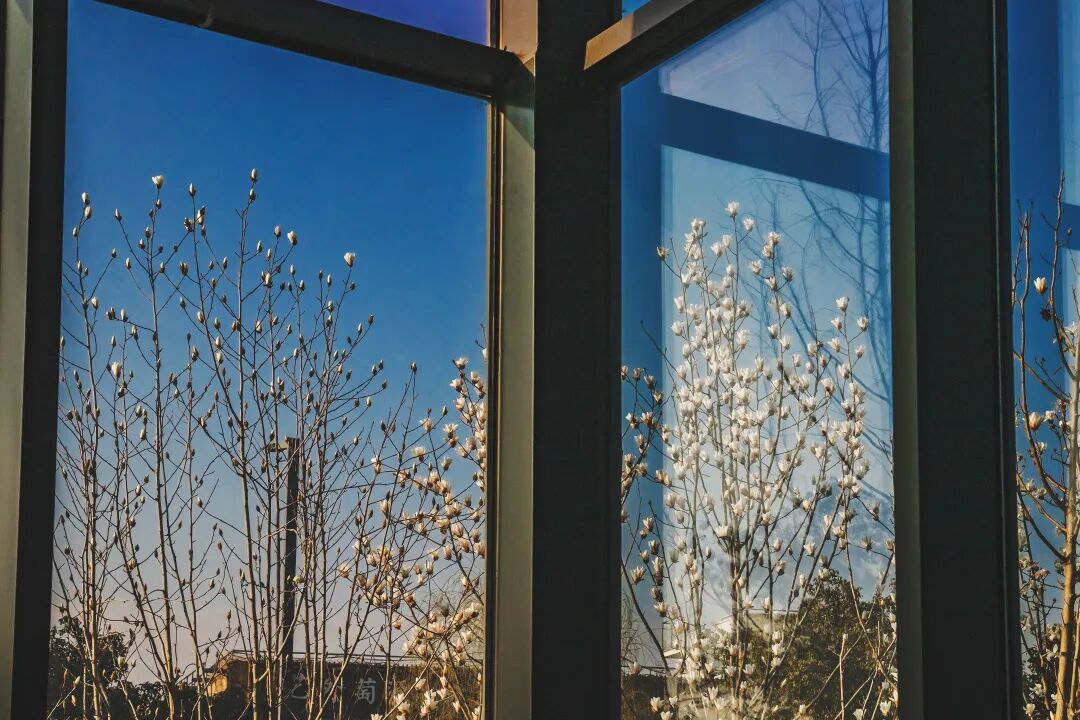 美术馆旁,玉兰静静绽放,纯白的花朵与艺术感十足的建筑相互映衬,清雅又出片,仿佛艺术与自然在此完美融合。
