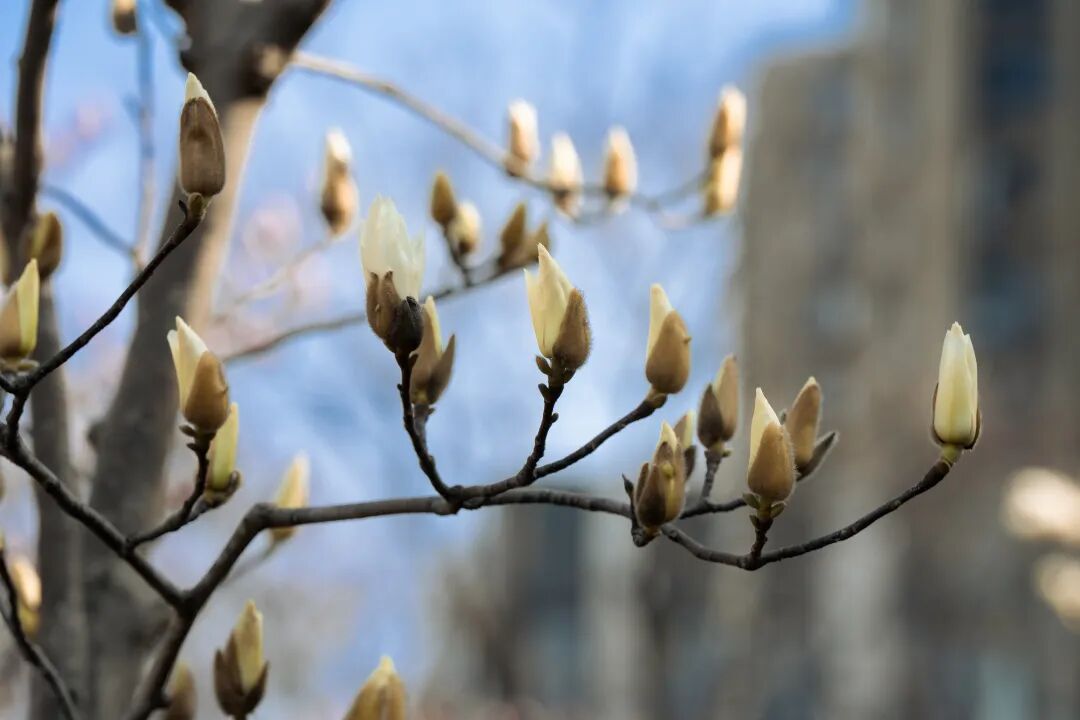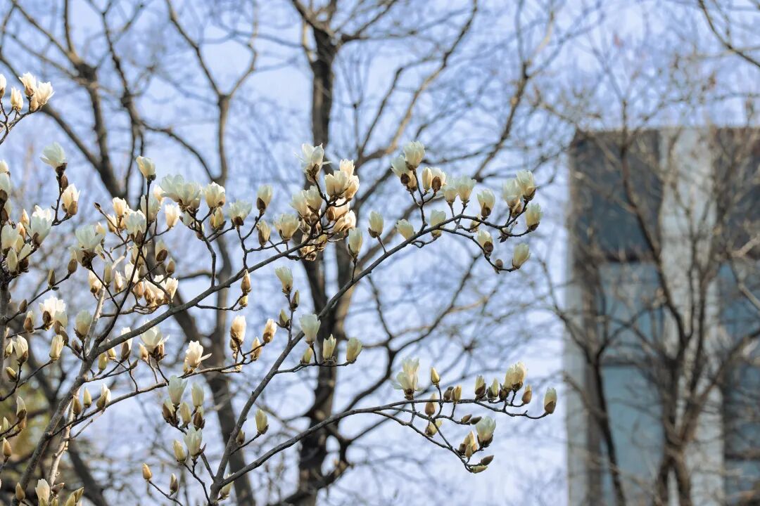 公园里的玉兰还在含苞待放,饱满的花苞挂满枝头,像一个个小小的白玉灯笼,静待着盛放的时刻。