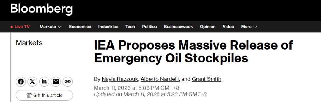 国际能源署署长法提赫·比罗尔11日宣布,IEA的32个成员国已同意释放4亿桶战略石油储备,这一规模远超2022年俄乌冲突后释放的1.83亿桶。