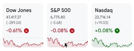 - 道指下跌约0.6%,金融和能源板块表现疲软,成为拖累指数的主要因素。