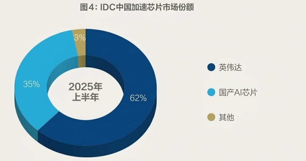 据IDC 2025年市场调研,国产AI芯片在英伟达垄断下占35%左右市场份额,已成为实际可用的主力,而非PPT备胎。