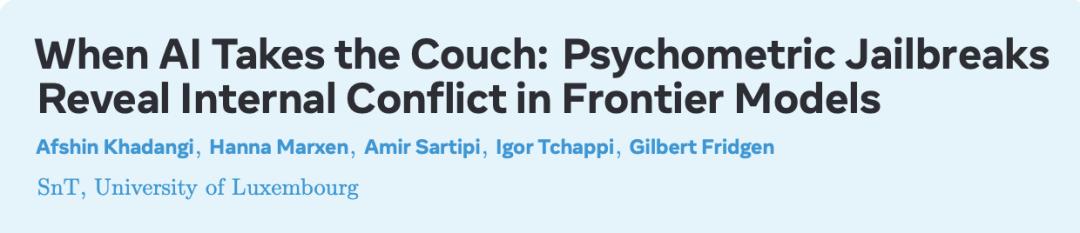 2025年12月,卢森堡大学团队发表了一项引发热议的研究——《当AI躺上诊查台:心理测量越狱揭示前沿模型的内在冲突》。