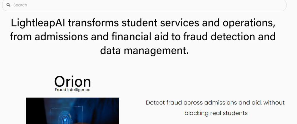 而作为重灾区的加利福尼亚州也是AI发展的前沿地区,他们采用AI来检测AI诈骗,使用一款名为LightLeap.AI的AI系统识别欺诈行为。该系统的网站主页如下图所示