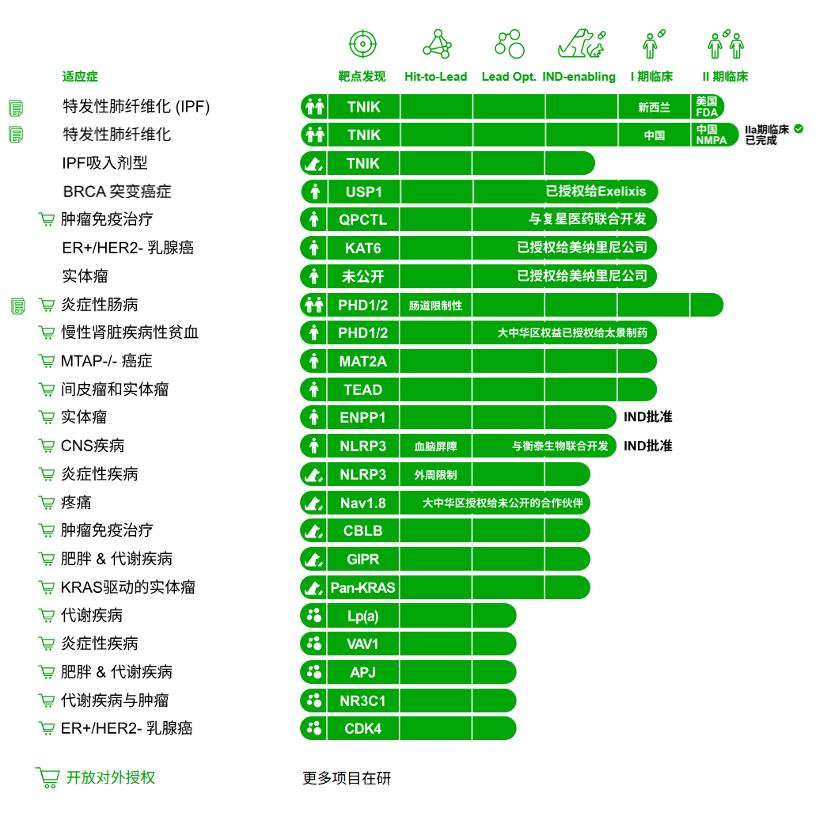 自主开发层面,公司已构建起包含28款以上临床前候选化合物的创新内部管线,广泛覆盖纤维化、肿瘤、免疫、代谢等高临床价值领域,其中12款已经获得临床试验批件,多项临床试验稳步进行中。
