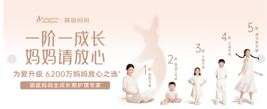 在夯实孕产护肤核心优势的基础上,袋鼠妈妈近年来加速了品类扩张,按照人群定位划分出四大产品系列,将服务范围从准妈妈延伸至产后妈妈、婴童乃至青少年,实现了全年龄段母婴护肤需求的全覆盖。