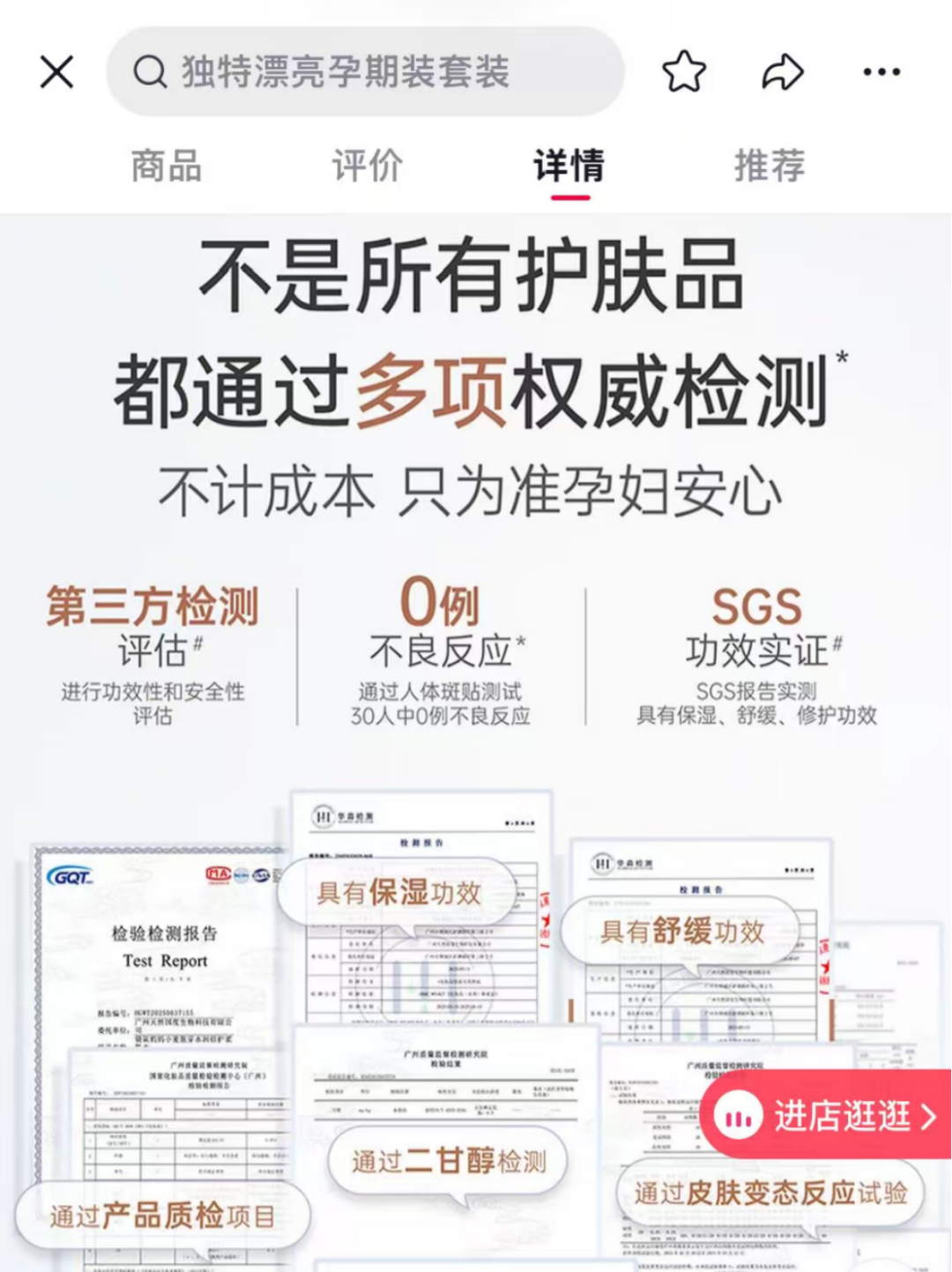 即便面对孕妇能否使用的询问,客服也回复称“妈妈可以放心使用的喔,咱们袋鼠妈妈产品经过权威第三方检测机构检测合格,通过多层质量风险把控来保证产品的安全性”。