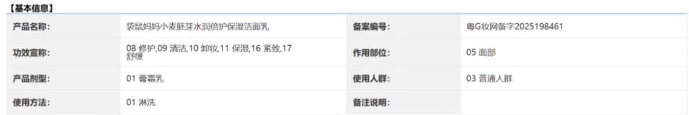 可凤凰网财经《公司研究院》在国家药监局国产特殊化妆品注册信息中查询发现,袋鼠妈妈小麦礼盒的五款核心产品——小麦胚芽水润倍护保湿洁面乳、柔肤水、保湿乳、维稳精华液、保湿霜,均无特殊化妆品注册信息。