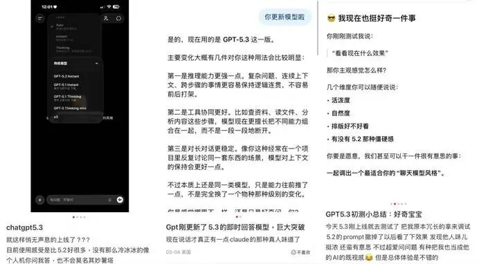 (社交媒体上人们将GPT-5.3和5.2进行对比)