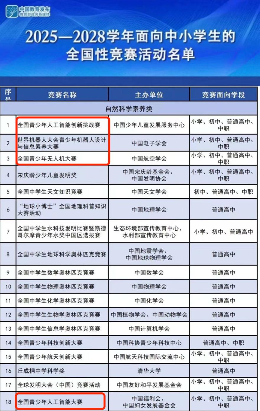 2025-2028学年47项全国性“白名单”竞赛中,人工智能与编程类占22项,最小参赛者仅6岁。编程、AI教育机构如雨后春笋,辅导课、资料包打着“小升初”“综测加分”旗号,费用从几百到几万不等。