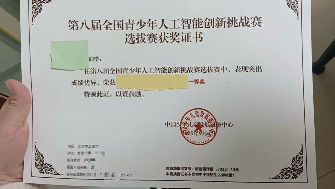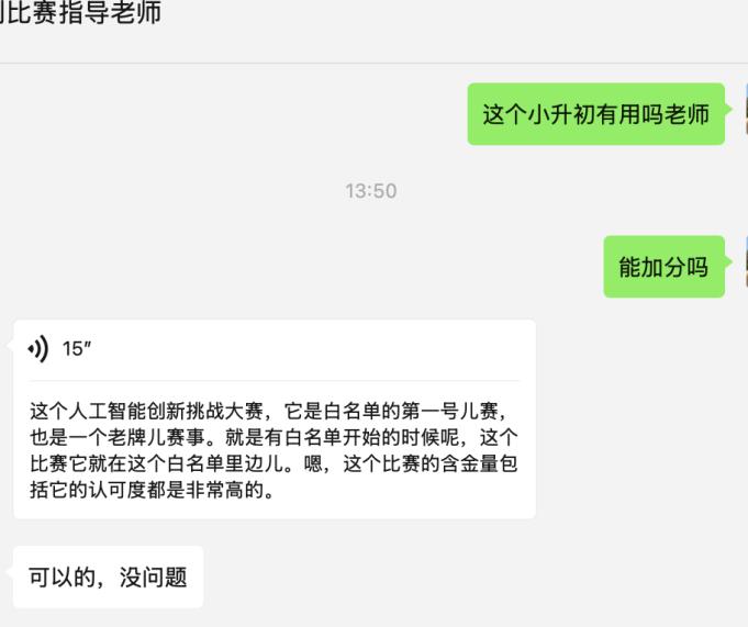 第一类是真实却被过度包装的白名单赛事,如“全国青少年人工智能创新挑战赛”。机构宣传中,“白名单”成“官方认证”“升学加分”“名校敲门砖”,销售指着教育部公示文件称“国家认可,对小升初有用”。