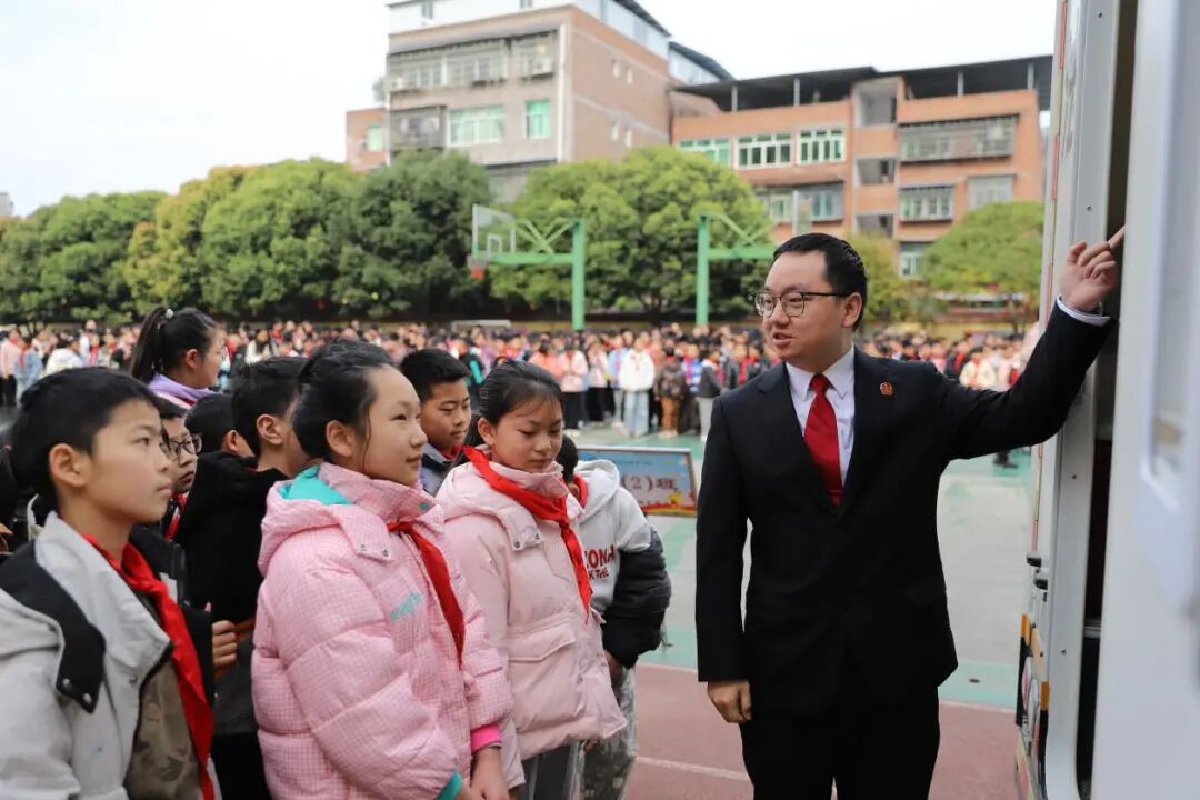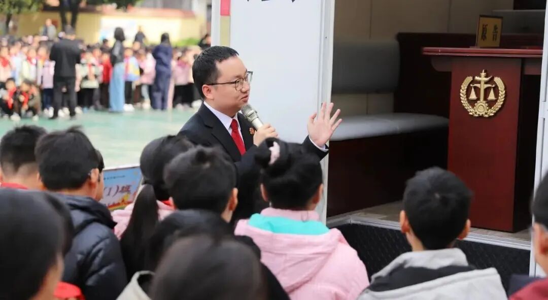 3月12日植树节当天,丰都法院龙河法庭的巡回审判车缓缓驶入龙河中心小学,为1000多名小学生带来了一堂别开生面的法治启蒙课,在孩子们纯真的心田播撒下法治的种子。