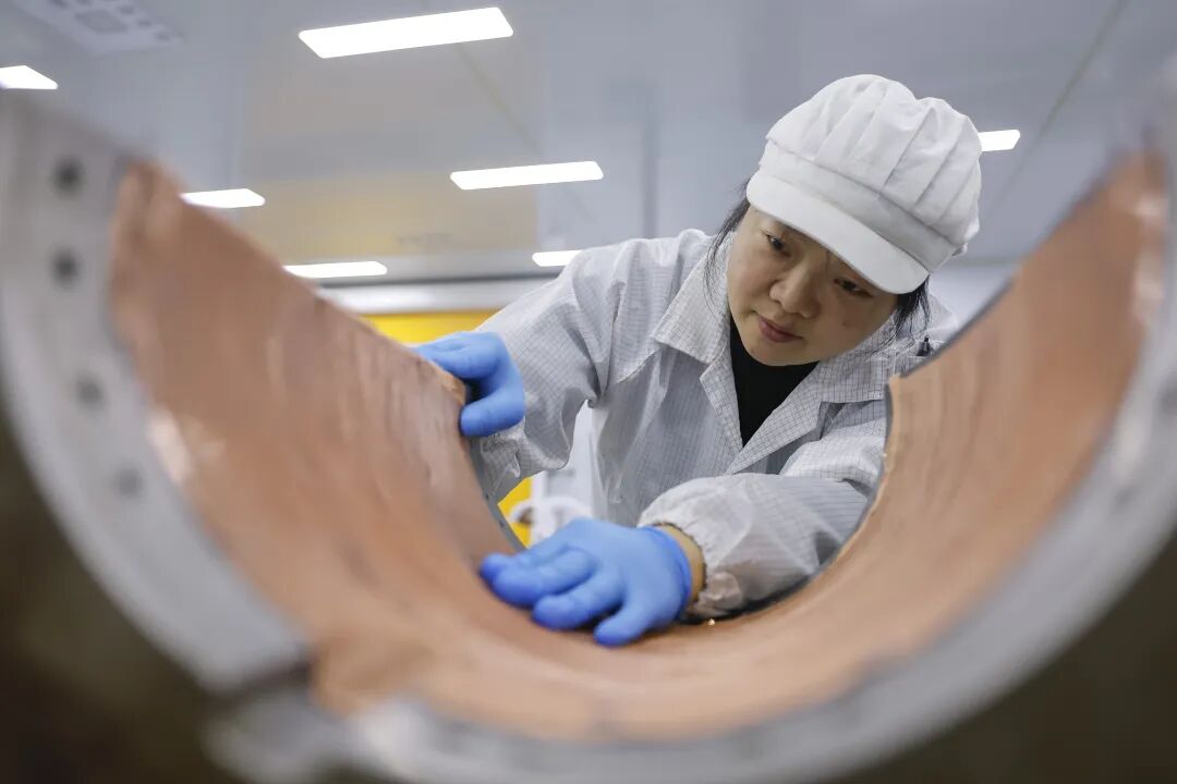 近日,走进位于蜀山区运河新城的安徽梦克斯航空科技有限公司(以下简称“梦克斯航空”)生产车间,机器不停运转,产线一片繁忙,一排排组装完成的火箭整流罩整齐摆放,在灯光下闪烁着银白色的科技光芒。工人们正专注地对这些复合材料部件进行精细加工和组装,每一次打磨、每一次装配,都是为了让它们以最优状态,护送火箭飞向浩瀚星空。