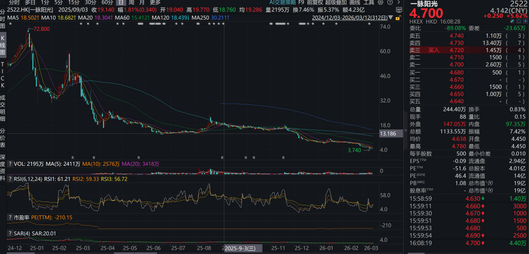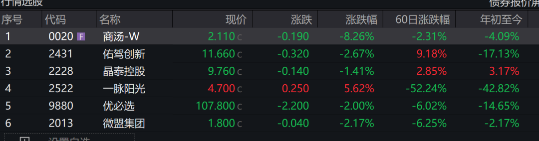 这6只股票中,近60日跌幅较大的仅一脉阳光(52%);年初至今,佑驾创新跌17%,优必选跌15%。