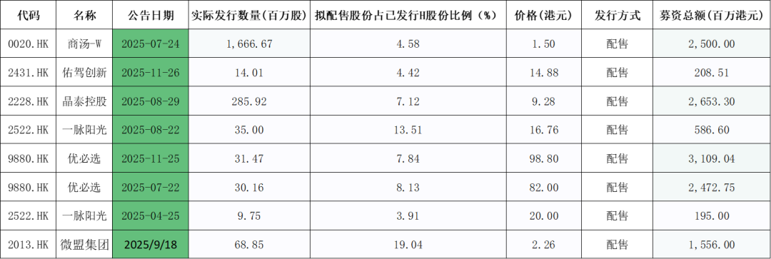 其他股票方面:佑驾创新11月25日配股前股价下跌,配股后持续下行,无极资本参与难获利;晶泰控股8月29日配股前股价上涨,配股后继续上涨,不符合做空条件;一脉阳光股价持续下跌,无盈利空间;优必选11月25日配股前一个半月跌幅超30%,做空利润丰厚;微盟集团9月18日配股前股价拉升,配股后暴跌,无极资本参与难获利;范式智能7月17日配股前后股价均拉升;中国儒意8月1日配股前涨幅显著,配股后阴跌,均不符合做空套利逻辑。