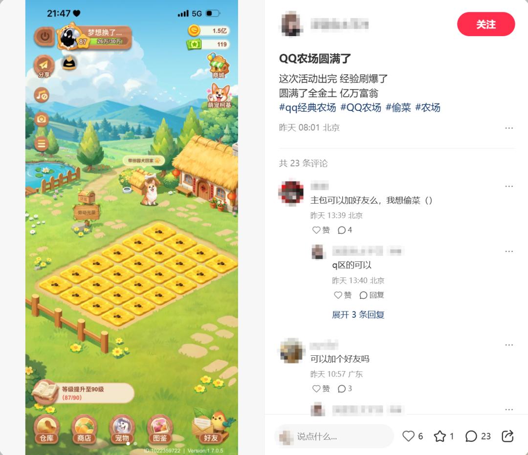 因此,《QQ经典农场》能取得畅销登顶的成绩,靠的不是传统小游戏那种高强度的营销方式,而是多年前悄悄植入用户内心的日常感——即便时间过去很久,也会因偶然的熟人分享或回忆触动,自然地打开这款游戏。