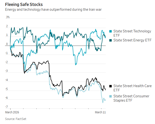 此外,美股市场还出现一个反常现象:地缘冲突爆发时,资金通常会涌入必选消费和医疗保健等防守型板块,但如今这一历史经验不再适用。