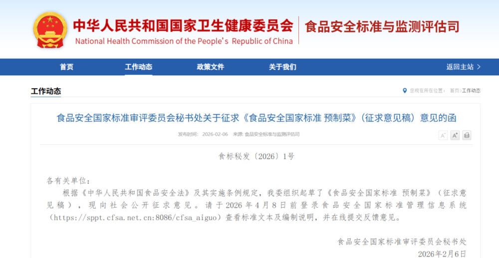 2026年2月,国家卫生健康委发布《食品安全国家标准预制菜》(征求意见稿),为发展多年的预制菜行业首次确立国家级强制性标准。从“禁止添加防腐剂”到“保质期最长12个月”,再到对食品添加剂“非必要不添加”的严格要求,国标不仅明确了安全底线,更成为产业升级的新起点。