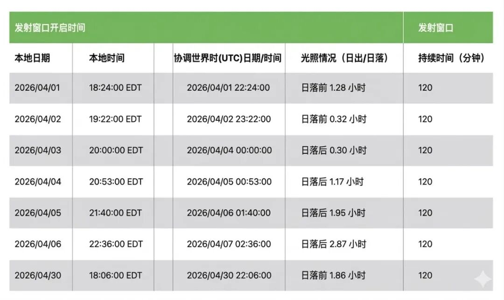 目前计划3月19日将SLS火箭运往发射台,4月1日为首次发射窗口。