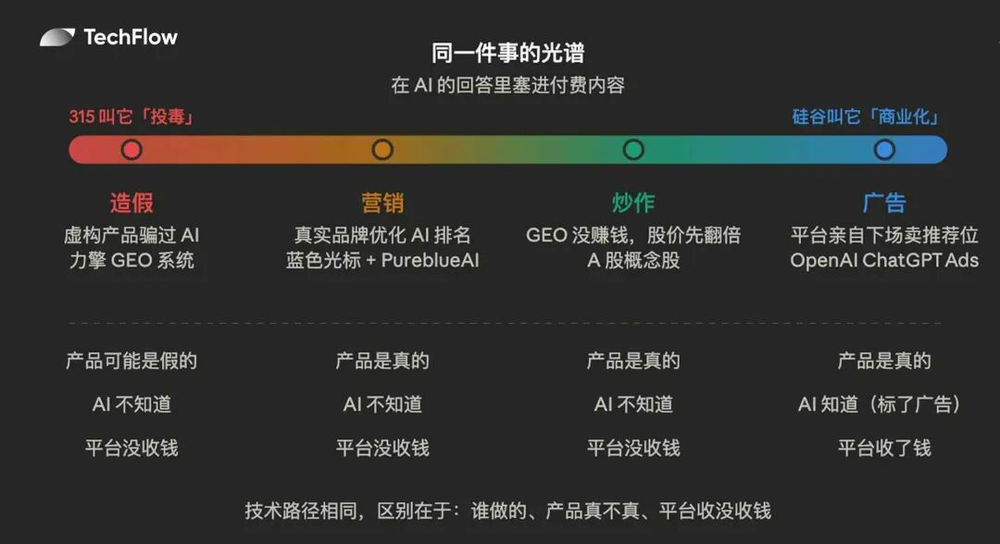 力擎灌软文是「投毒」,OpenAI挂赞助是「商业化」,本质都是通过付费影响AI推荐。对用户而言,区别仅在于位置和标签。从315曝光的几百元灰产,到A股几十亿概念,再到硅谷170亿美元商业化,同一件事的价格差了几万倍。