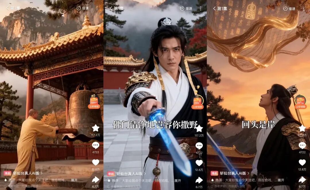 用户对AI短剧的接受度也在快速提升。抖音热榜统计,2026年春节档,《斩仙台AI真人版》《苞米地后的新生》等AI短剧登顶热搜,累计播放量过亿。观众关注点也从“是否AI制作”转向“剧情质量”,2026年AI短剧也将逐渐成熟,进入“内容为王”的阶段。其中,《斩仙台真人AI版》由12人团队耗时30天完成,算力成本仅10万元,而相同规模、相同题材的真人短剧,成本至少在40万元以上。