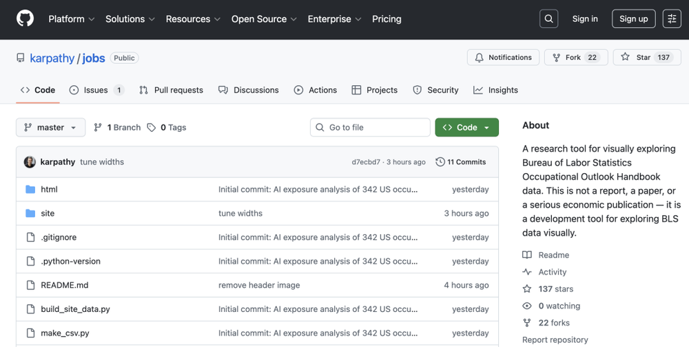 网址链接:https://karpathy.ai/jobs/