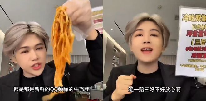 有了流量,如何变现?他敏锐抓住直播带货的风口,转型做“猛吃”风格的吃播。镜头前,他吃得“嘎嘎香”,满嘴流油,大喊“太好吃了”“家人们赶紧冲”;镜头后,他对粉丝称“交朋友”“不赚钱,就是玩”。