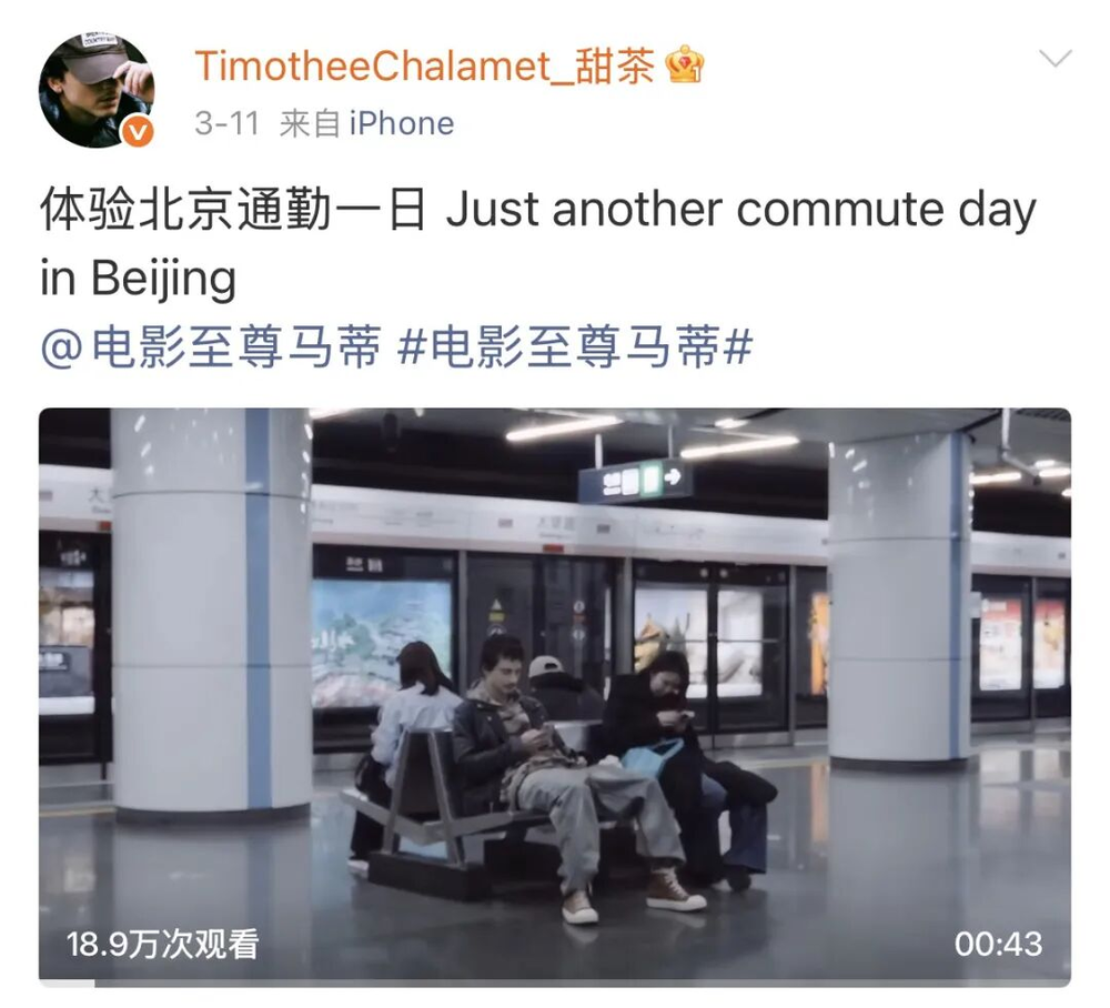 一周前甜茶的中国行收获好评,很多人觉得他真实,比以往来中国宣传的好莱坞艺人更有“活人感”,也更尊重中国市场,与影迷距离更近。他在中国尝试霉豆腐、吃火锅、坐地铁……这些行为不全是营销,也源于年轻艺人爱体验的天性。