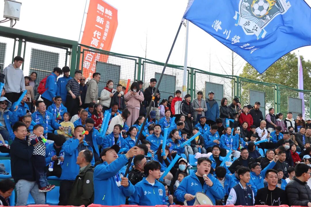 当天共有两千余名观众到场观赛,现场气氛热烈。“欢迎肥东,谢谢庐江”“庐江必胜”“庐江队加油”等呐喊声此起彼伏,助威声和欢呼声回荡在绿茵场上。