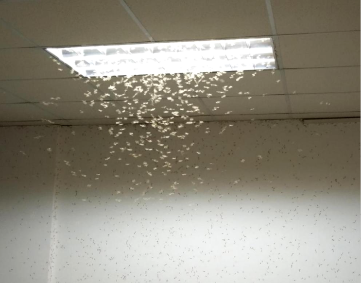 每年3到5月,如果室内出现大量浅黄色或褐色的有翅飞虫,它们会朝着光源飞舞,之后自行脱落翅膀,在窗台、地面等地方留下整齐的翅痕,这就是白蚁分飞的典型特征。
