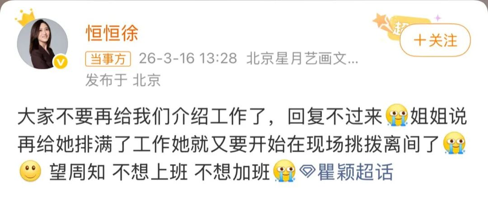 谁也没想到,瞿颖翻红后,经纪人会发出“不想加班”的声明。