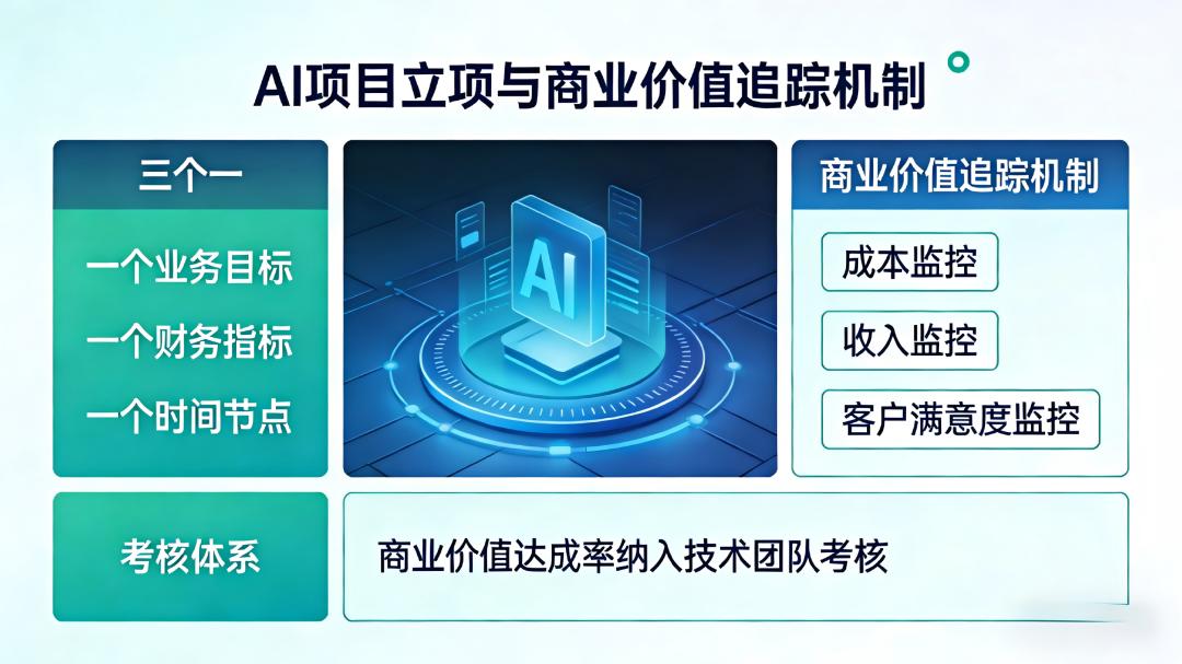 应对策略:每个AI项目立项时明确“三个一”:一个业务目标、一个财务指标、一个时间节点,建立“商业价值追踪机制”,持续监控AI对成本、收入、客户满意度的影响,将商业价值达成率纳入技术团队考核。