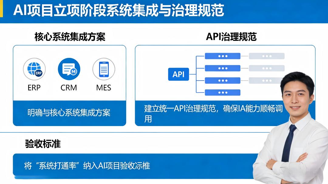 应对措施:AI项目立项阶段明确与ERP、CRM、MES等核心系统的集成方案,建立统一API治理规范,确保AI能力被其他系统顺畅调用,将“系统打通率”纳入验收标准。