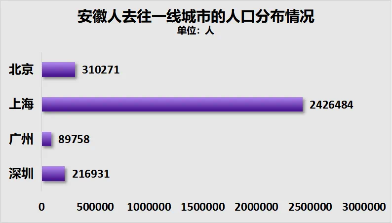 从一线城市的情况来看,安徽人最喜欢去上海。