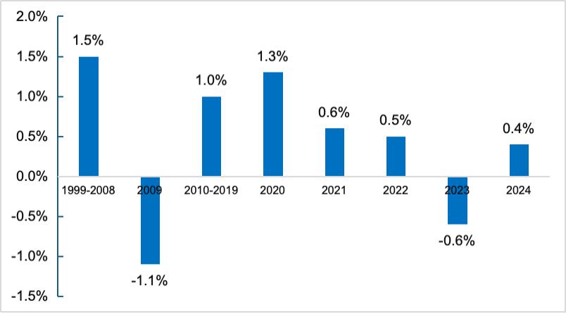 图 欧盟近年的劳动生产率增速(来源:欧盟统计局)