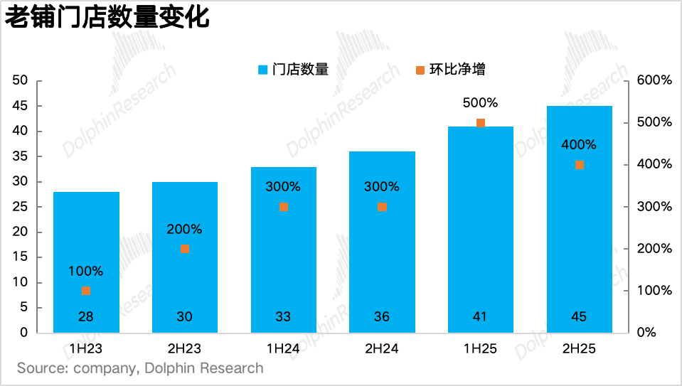 4. 线上渠道占比显著提升。受益于品牌效应外溢及线下门店稀缺性,下半年线上营收同比增长358%,占比从13%升至20%,反映品牌影响力正快速渗透至一线城市以外的消费群体,填补线下覆盖空白。