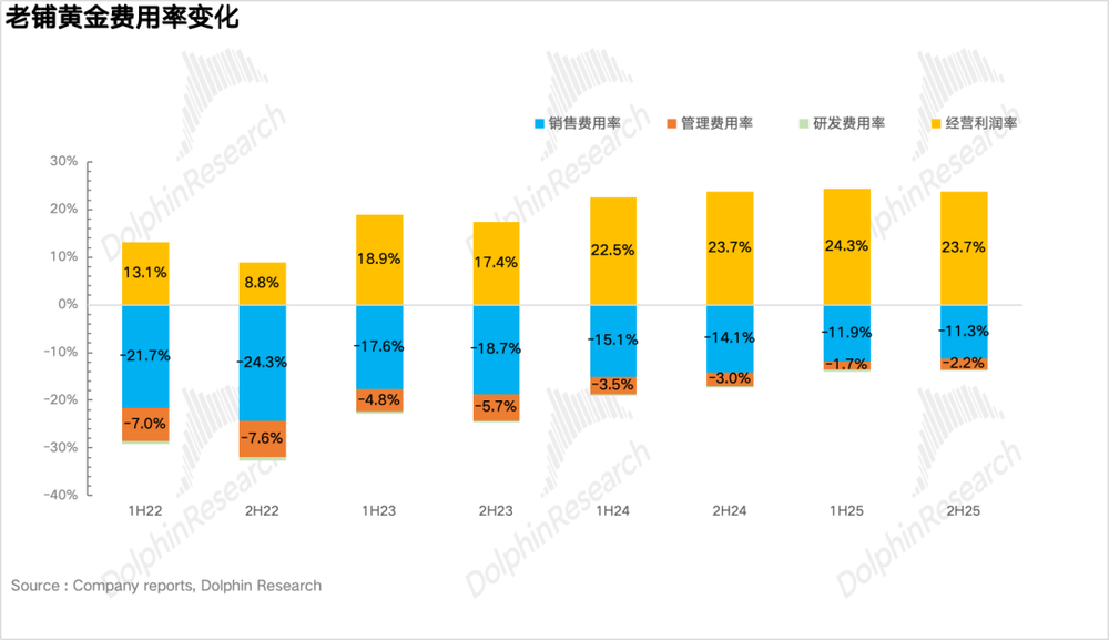 5. 毛利率略有下降。受下半年金价持续上涨影响,尽管公司在8月、10月两次提价(整体幅度超30%),但提价滞后于金价涨幅,最终毛利率同比下降3.8个百分点至37.2%。
