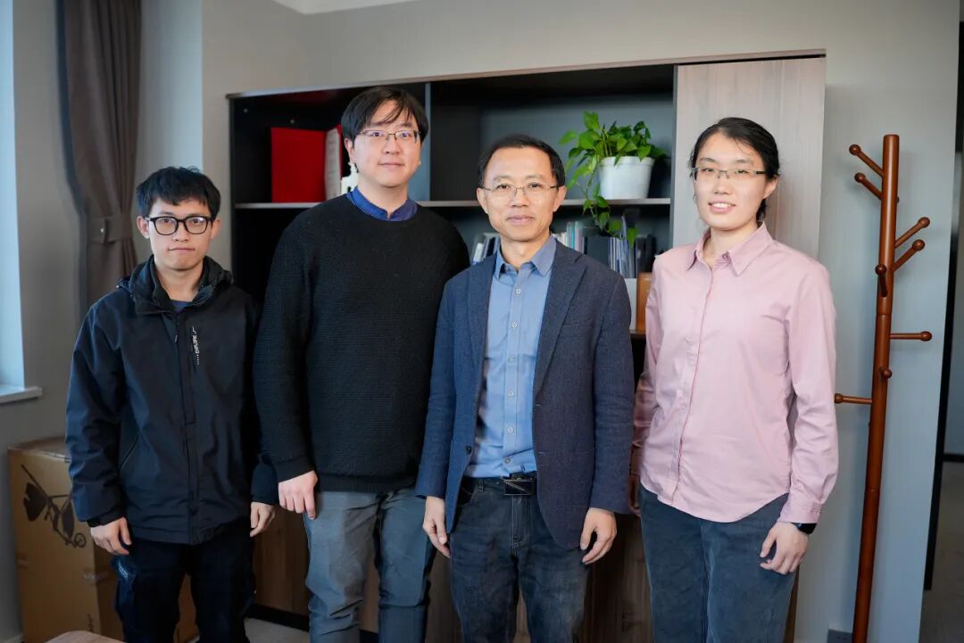 洪波(右二)和团队部分博士生合影