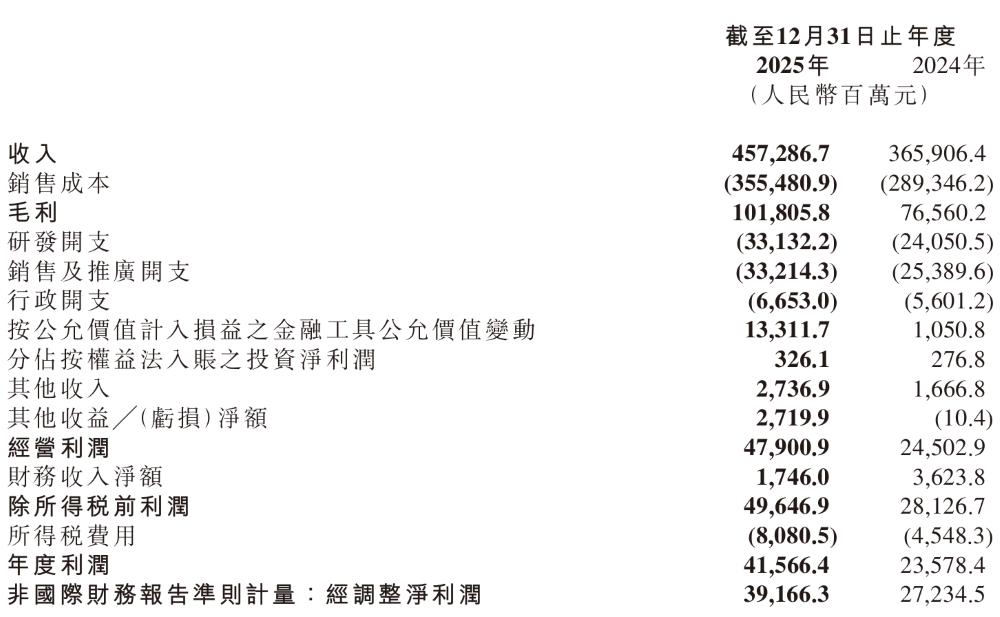 小米集团2025年全年营收4573亿元,同比增长25.0%;经调整净利润392亿元,同比增长43.8%。
