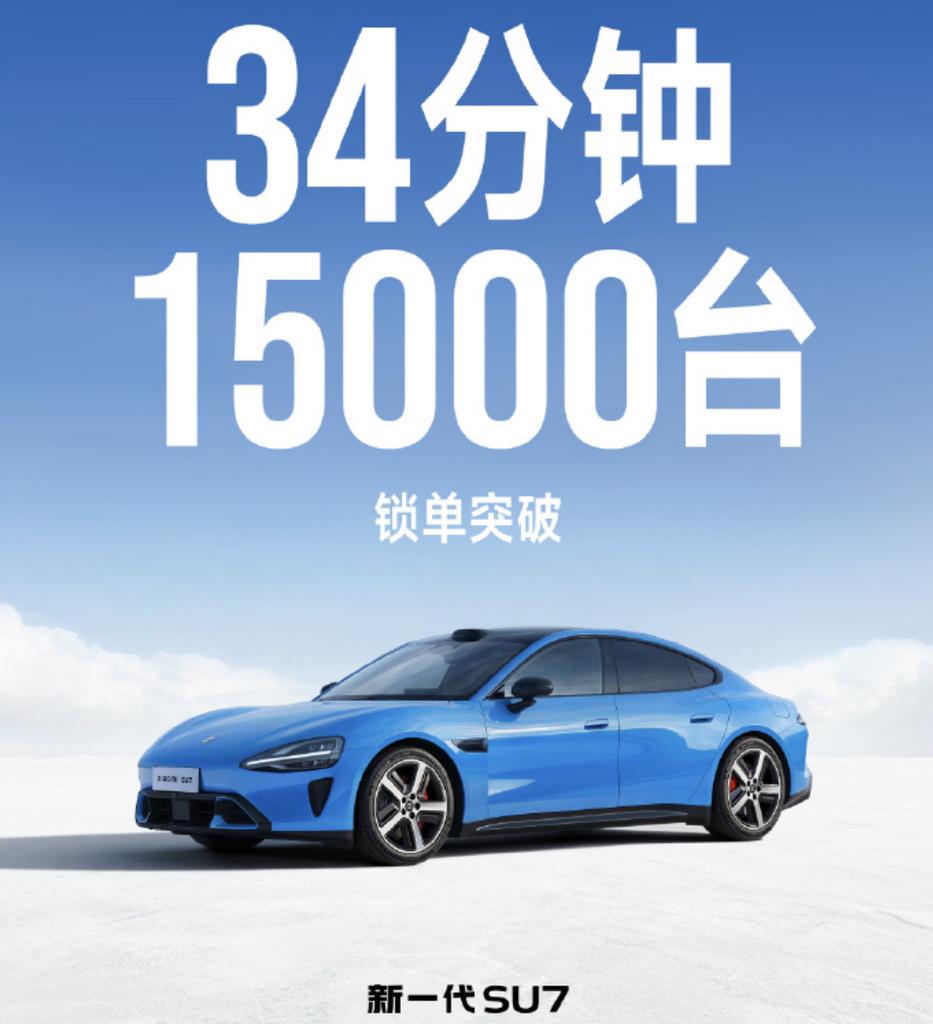 新一代小米SU7 34分钟锁单1.5万台