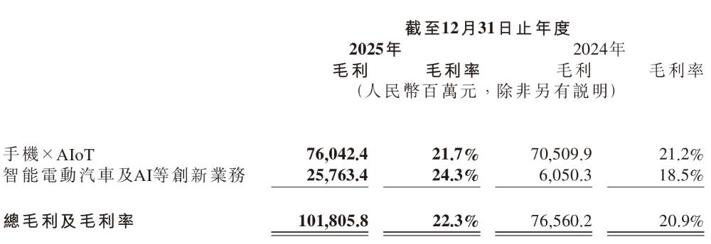 2025年小米智能电动汽车及AI等创新业务分部经营收益