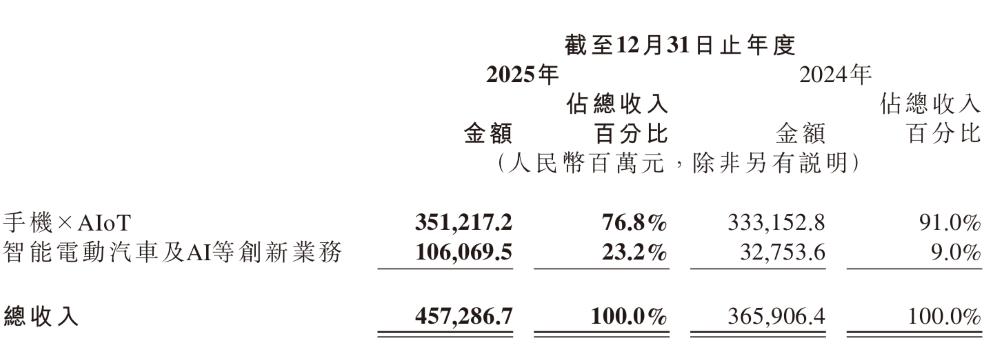 小米集团智能电动汽车及AI等创新业务分部2025年财务数据