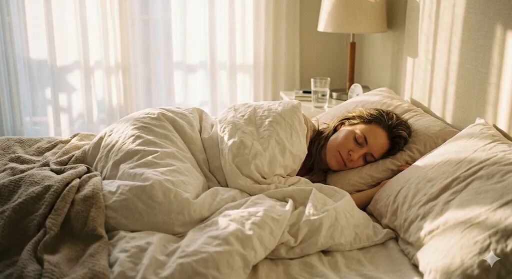 不是那种躺在床上思绪纷飞、难以入眠的状态,不是半夜频繁惊醒的睡眠,也不是闹钟还没响起就因焦虑提前醒来的睡眠。