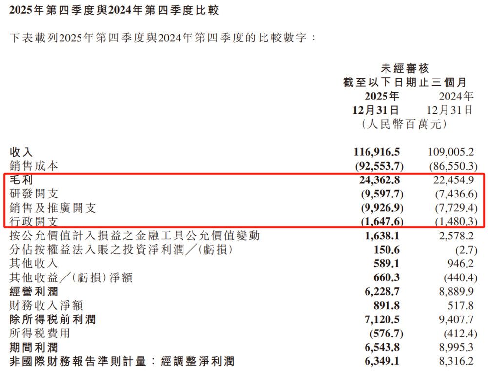 由此可见,小米四季度经营表现不佳,主因包括市场竞争激烈、国补退坡(部分地区从全面补贴转为摇号或限时抢购)、手机量价齐跌,叠加内存涨价,同时研发、管理、销售费用均有增长。