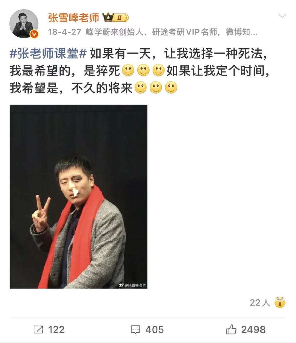 张雪峰2018年发布的一条微博,如今看来仿佛是一种预示。